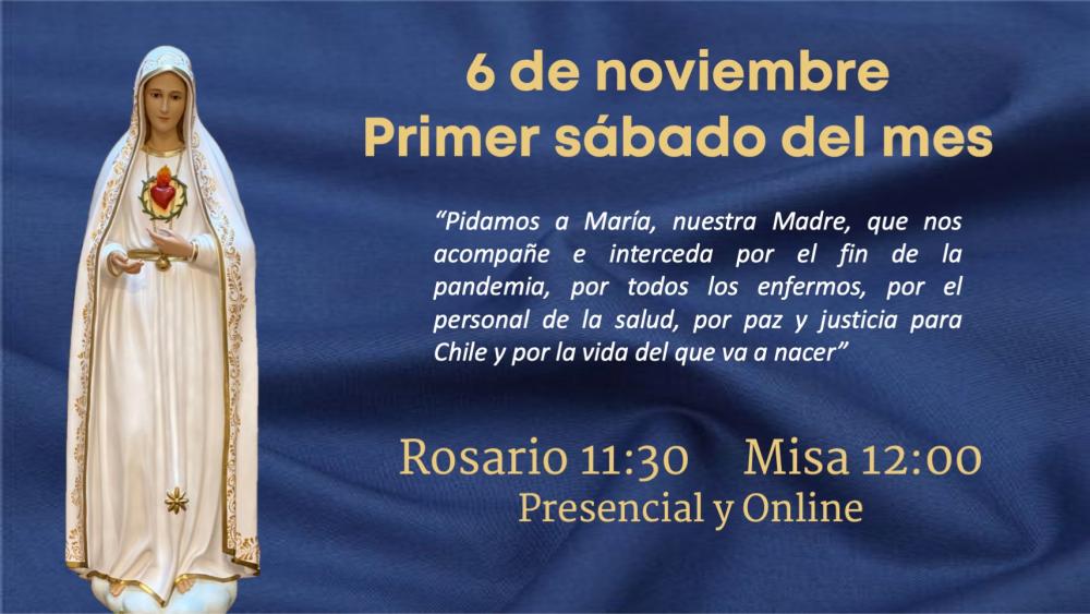 Este primer sábado de noviembre Nuestra madre nos espera a las 11:30 en el templo y online.